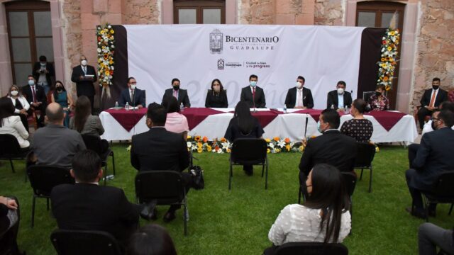 Zacatecas, Zac.-Este 21 de octubre se celebró la Séptima Sesión de Cabildo y Segunda Solemne e Itinerante del Honorable Ayuntamiento de Guadalupe, Zacatecas, desahogada en uno de los jardines del Museo Virreinal, donde se conmemoró el Bicentenario de la creación del Primer Ayuntamiento de Guadalupe, que tuvo lugar en 1821.