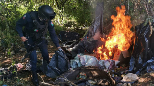Al acudir a esa localidad, entre caminos de terracería, los efectivos policiales ubicaron un sitio que, por sus características y hallazgos, correspondía a un campamento que servía como punto de vigilancia a un grupo delincuencial, mismo que fue abandonado ante la llegada del personal policial.