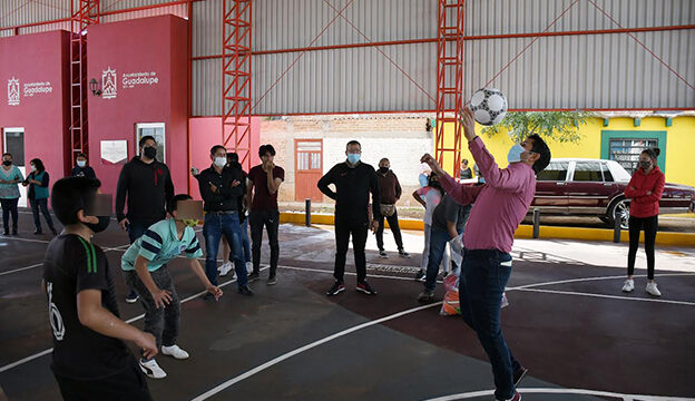 Zacatecas, Zac.- Comprometido con la búsqueda de la salud física y mental de los guadalupenses a través del deporte, el Presidente Municipal, Julio César Chávez, entregó tres canchas rehabilitadas más en distintos puntos del municipio.