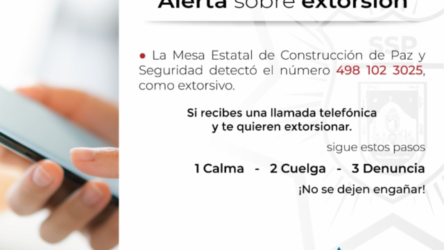 Tras la solicitud de apoyo, integrantes de la Unidad Especializada, Enlace Ciudadano y Atención a Víctimas de la Secretaría de Seguridad Pública proporcionaron asesoría, con la que evitaron el pago y se logró desactivar la extorsión.