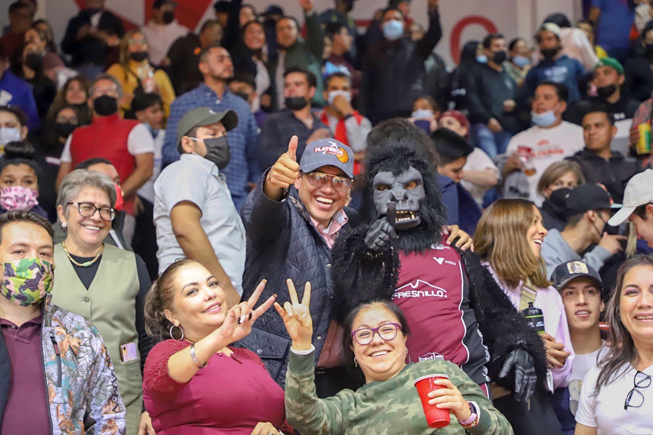 Por ello, llegó a animar a su equipo Plateros Fresnillo que no lo defraudó al llevarse el triunfo en el cuarto partido de la Liga Nacional de Baloncesto Profesional (LNBP) SisNova, obligando a Fuerza Regia a un quinto partido.