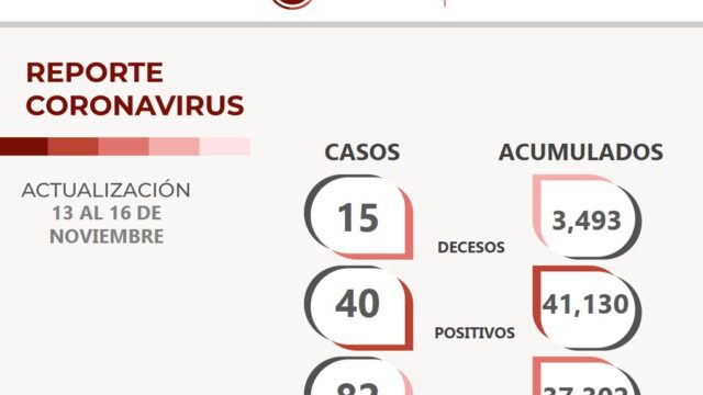 Zacatecas, Zac.- Durante los últimos cuatro días, las autoridades estatales de salud informaron que 82 zacatecanos fueron declarados libres del COVID-19, contabilizaron 40 nuevos contagios y registraron 15 muertes.