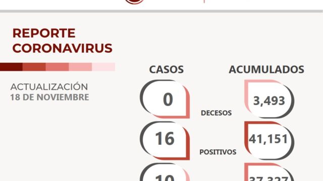 Zacatecas, Zac.- Por segundo día consecutivo, Zacatecas no registró víctimas mortales por la pandemia del COVID-19. De acuerdo al reporte de las autoridades estatales de salud, hay 16 nuevos casos positivos y 10 personas que fueron declaradas libres de la enfermedad.