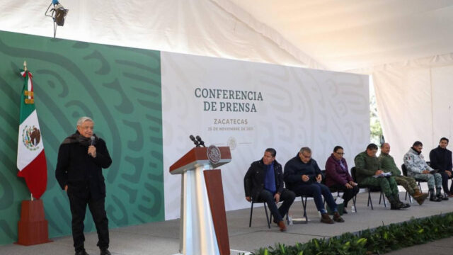 Al brindar su conferencia matutina desde las instalaciones de la Decimoprimera Zona Militar, a un día de haber presentado el Plan de Apoyo para Zacatecas, el Presidente Andrés Manuel López Obrador ofreció todo su respaldo al Gobernador David Monreal para reforzar la seguridad en el estado, así como avanzar en la solución de la nómina educativa y cobertura de salud.