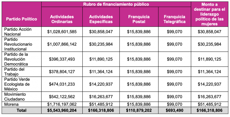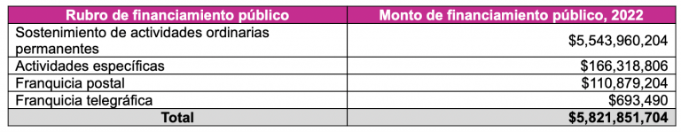 El financiamiento que corresponde a cada partido político es el siguiente:
