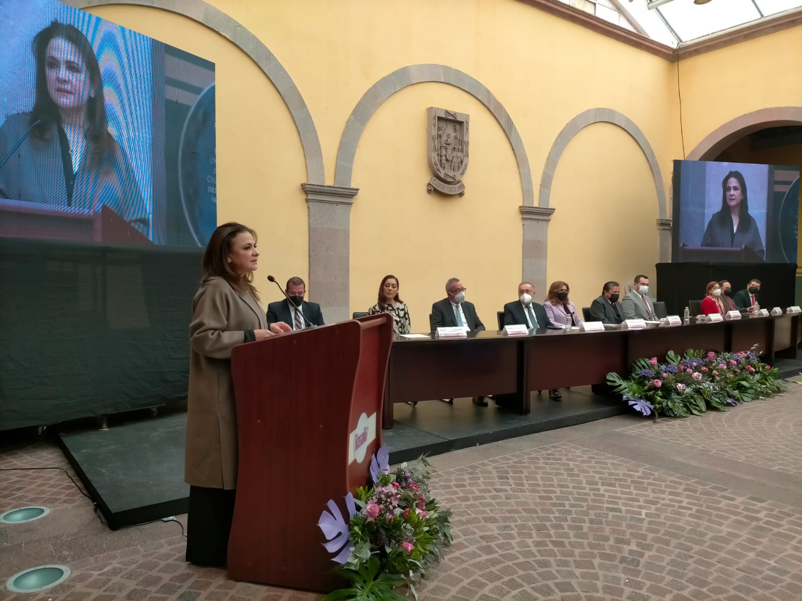 Acudieron también las senadoras Claudia Anaya Mota y Geovanna Bañuelos de la Torre, y la diputada federal Noemí Luna Ayala. Asistieron también autoridades del ámbito local, como Arturo Nahle García, Magistrado presidente del Tribunal Superior de Justicia del Estado, y Jehú Salas Dávila, presidente de la Comisión Permanente de la LXIV Legislatura del Estado.