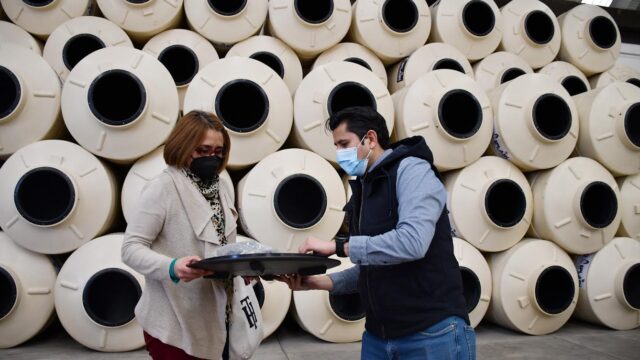 Los lineamientos del semáforo naranja para mitigar la ola de contagios de Covid-19, limita la aglomeración de personas, motivo por el que la entrega de los 300 tinacos se realiza de manera escalonada, convocando a grupos pequeños hasta concluir con la última familia beneficiada.