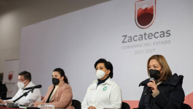 En representación del Gobernador David Monreal Ávila, Gabriela Pinedo Morales, secretaria de Gobierno, encabezó la conferencia semanal acompañada por la Delegada de Programas para el Desarrollo, Verónica Díaz Robles, y la titular de Instituto del Seguro Social en Zacatecas (IMSS), Saandra Durán Vázquez, así como los secretarios de Educación y Salud, Maribel Villalpando Haro y Uswaldo Pinedo Barrios.