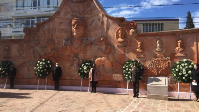 Con la presencia de representantes de los tres poderes del Estado, así como autoridades militares y de la capital, se colocó una ofrenda floral y se montó guardia de honor ante el monumento a la Constitución.