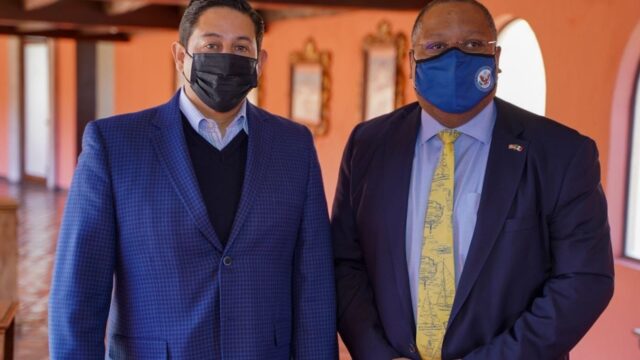 Zacatecas, Zac.- Con el fin de trazar rutas de trabajo estrechas, el presidente municipal de Zacatecas, Jorge Miranda Castro celebró una reunión con Roger C. Rigaud, quien se desempeña como cónsul general de Estados Unidos en Monterrey.