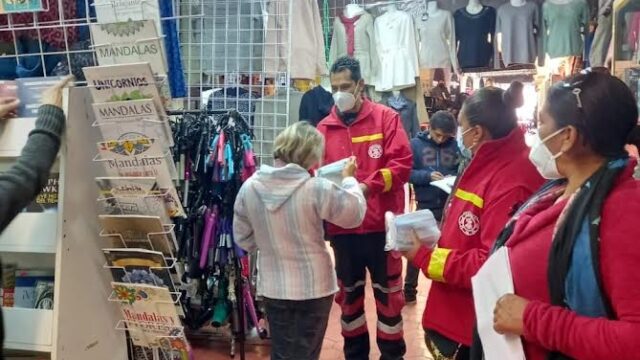 Elementos de Protección Civil recorren a diario tianguis, mercados, centros comerciales y lugares concurridos de la capital para explicar la importancia del autocuidado, así como para supervisar la aplicación de las medidas sanitarias entre las y los comerciantes.