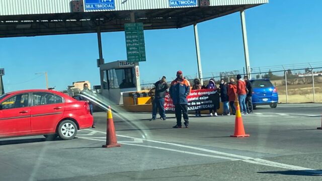 Zacatecas, Zac.- La mañana de este miércoles, maestros de la Sección 58 del SNTE tomaron la caseta de cobro de Calera, dentro de las acciones de protesta por la falta de pago de ya, dos quincenas.