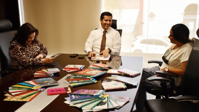 Al término de la reunión, Julio César Chávez obsequió a la Coordinación Estatal de Bibliotecas 60 ejemplares de ‘Lo que no registró la historia. Cuentos y relatos de la Revolución y la Cristiada’, de Jesús Ibarra Jaramillo para el incremento del acervo de las distintas bibliotecas del estado.