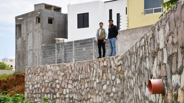 Zacatecas, Zac.- Con el interés de prevenir el riesgo que representa la corriente el Arroyo El Coyote para algunas viviendas en el Fraccionamiento Galerías, el Presidente Municipal de Guadalupe, Julio César Chávez Padilla, supervisó la conclusión del muro de contención.