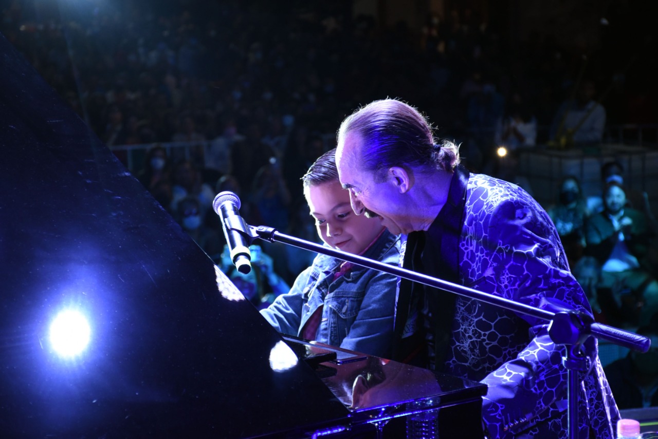 Antonio Eduardo Pérez, de apenas 10 años de edad también cumplió su sueño de tocar junto al gran pianista Raúl Di Blasio, él mismo eligió la melodía: ‘Corazón de niño’; además, el pequeño le entregó -a nombre del Ayuntamiento de Guadalupe- un reconocimiento del Festival Cultural y Artístico de Julio.