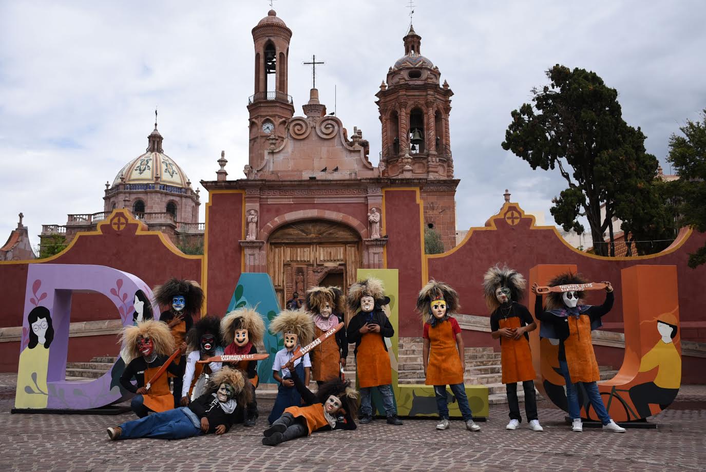 Frente a las letras monumentales de Guadalupe hicieron su aparición los integrantes de la Danza La Guadalupana, una de las más antiguas del municipio, conformada en honor a la Virgen de Guadalupe, cuyos integrantes ofrecen su baile a la patrona de las familias guadalupenses.