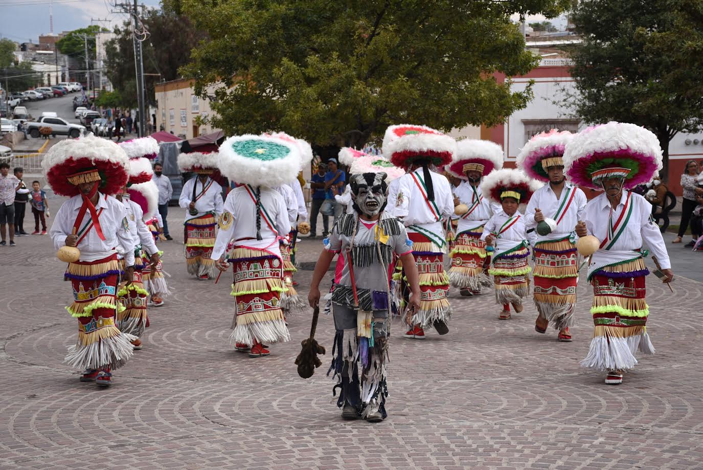 En tanto, un grupo de tastuanes del municipio de Jalpa danzaron al ritmo del tamborazo, emitiendo sonidos a través de las máscaras y haciendo mover las monteras hechas de manera artesanal con crines de caballo.
