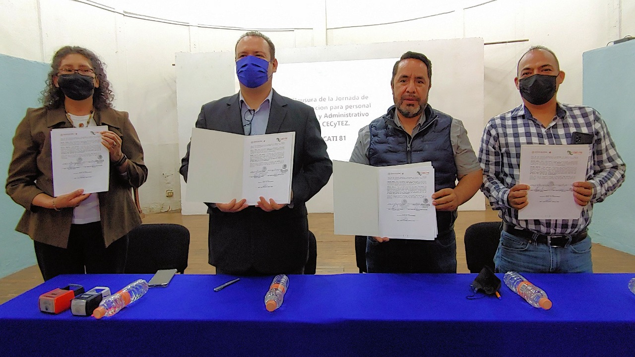 Por su parte, Lucio Cuauhtémoc Mendoza Amaro, secretario general del Sitcecytez-Emsad, aplaudió la voluntad del Cecytez y del Cecati 81 para trabajar en la capacitación continua de su personal agremiado, pues esto le dotará de las herramientas para desarrollar nuevas estrategias de enseñanza.