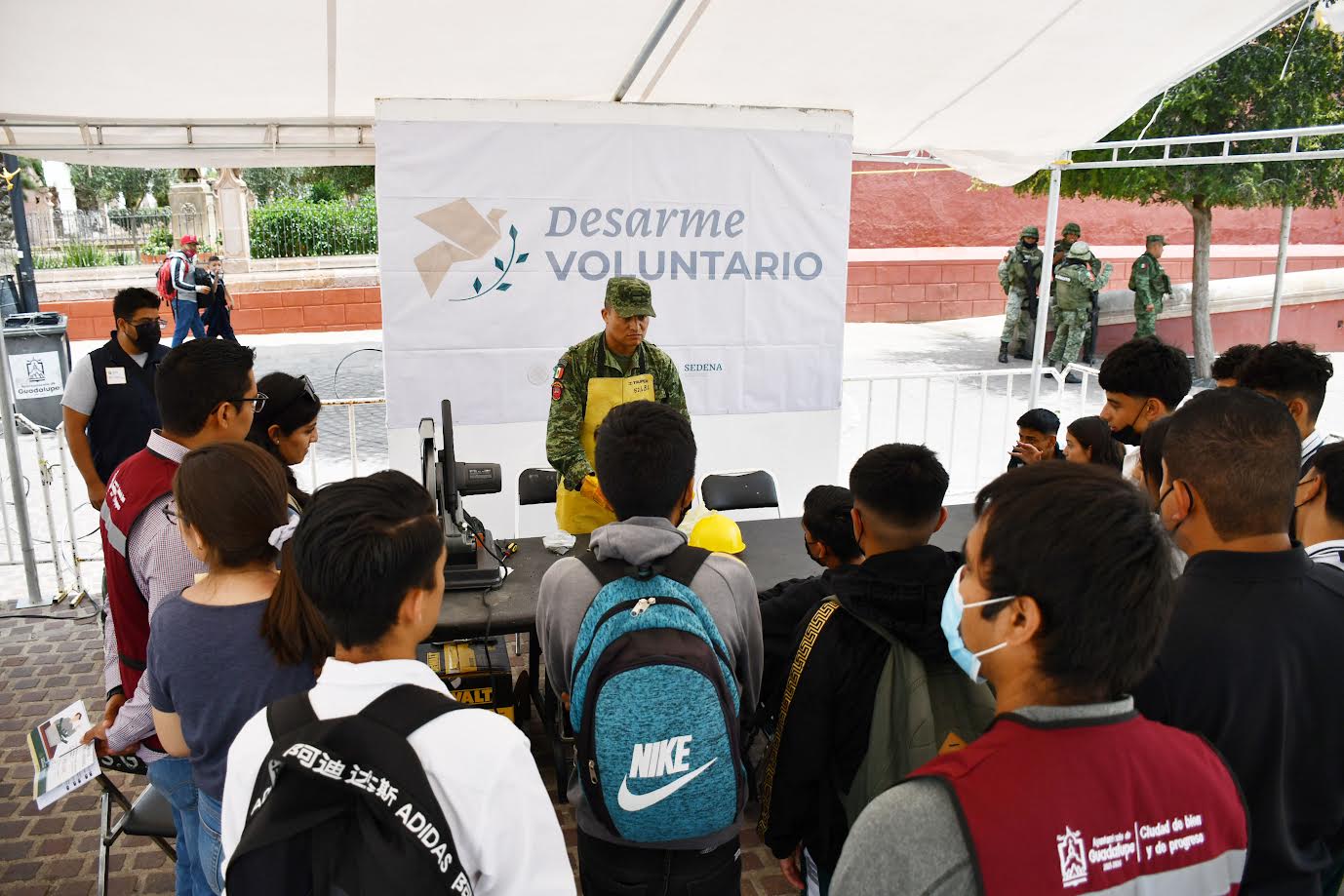 Zacatecas, Zac.-Como parte del programa ‘Ferias de la Paz y Desarme Voluntario’ que este jueves puso en marcha en el estado de Zacatecas el Gobernador, David Monreal Ávila, el Ayuntamiento de Guadalupe, que preside Julio César Chávez Padilla, participa activamente en esta campaña a través de las Direcciones de Juventud y de Promoción y Fomento de los Valores.