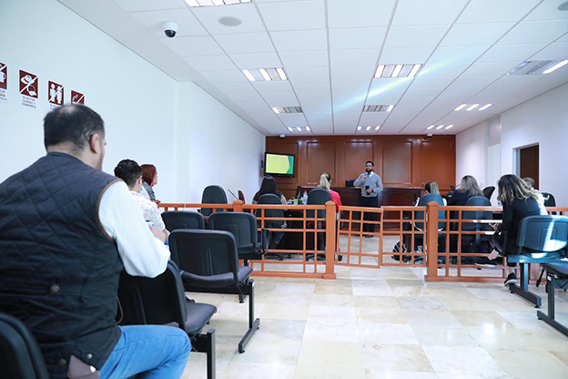 Este curso se realiza en una sala de oralidad, donde el Juez de Control explicó las virtudes y las restricciones que tienen los periodistas de acuerdo al Código Nacional de Procedimientos Penales y las ventajas del sistema penal acusatorio en cuanto a transparencia, publicidad y los roles que desempeña el Ministerio Público, policía, asesor jurídico, el órgano jurisdiccional, la Defensa, imputado, víctima, testigos, juezas y jueces, así como las diversas audiencias y etapas que existen en el proceso penal.