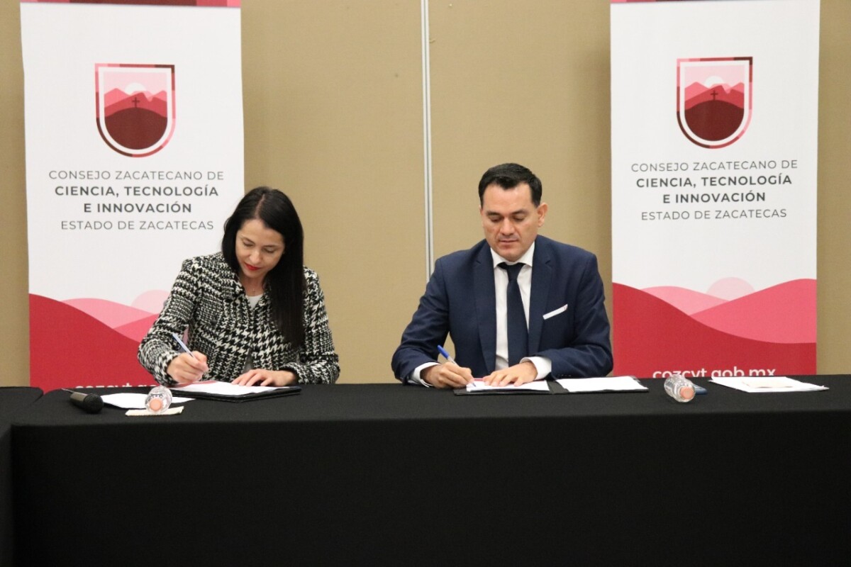 Para lograrlo, el Consejo Zacatecano de Ciencia Tecnología e Innovación (Cozcyt) y el Instituto Zacatecano de Cultura (IZC) Ramón López Velarde, a través de sus titulares Hamurabi Gamboa y María de Jesús Muñoz, respectivamente, firmaron el Convenio Marco de Colaboración de Ciencia, Tecnología y Cultura.