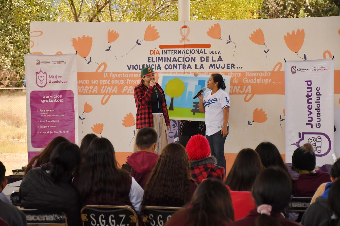 Zacatecas, Zac.- En el marco del Día Internacional de la Eliminación de la Violencia Contra La Mujer, el Ayuntamiento de Guadalupe que preside el alcalde Julio César Chávez Padilla a través del Instituto de la Mujer Guadalupense, en coordinación con la Dirección Municipal de la Juventud y los Centros de Integración Juvenil de Guadalupe, llevó a cabo una serie de actividades de concientización sobre el tema en diversos planteles educativos de nivel medio superior y superior, dirigidos a la comunidad estudiantil.