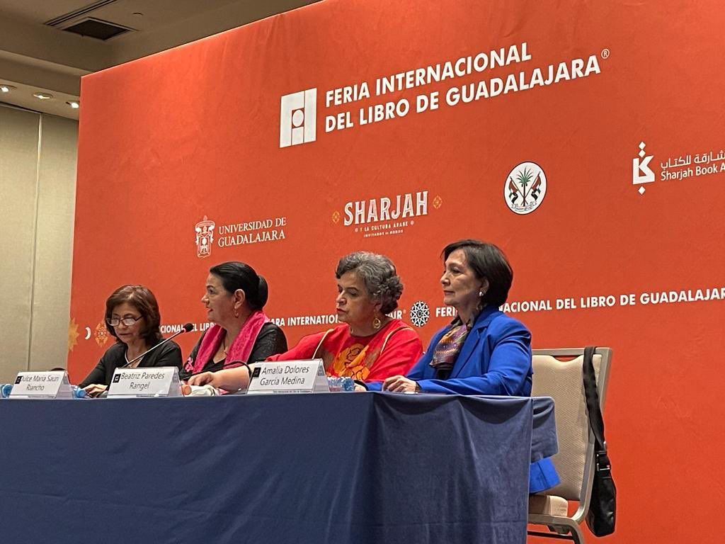 La exgobernadora de Zacatecas, Amalia García, participó en el panel «Liderazgo femenino e innovación sostenible para transformar al país», dentro de las actividades de la Feria Internacional del Libro de Guadalajara, junto a las también exgobernadoras de Yucatán, Dulce María Saurí, y de Tlaxcala Beatriz Paredes.