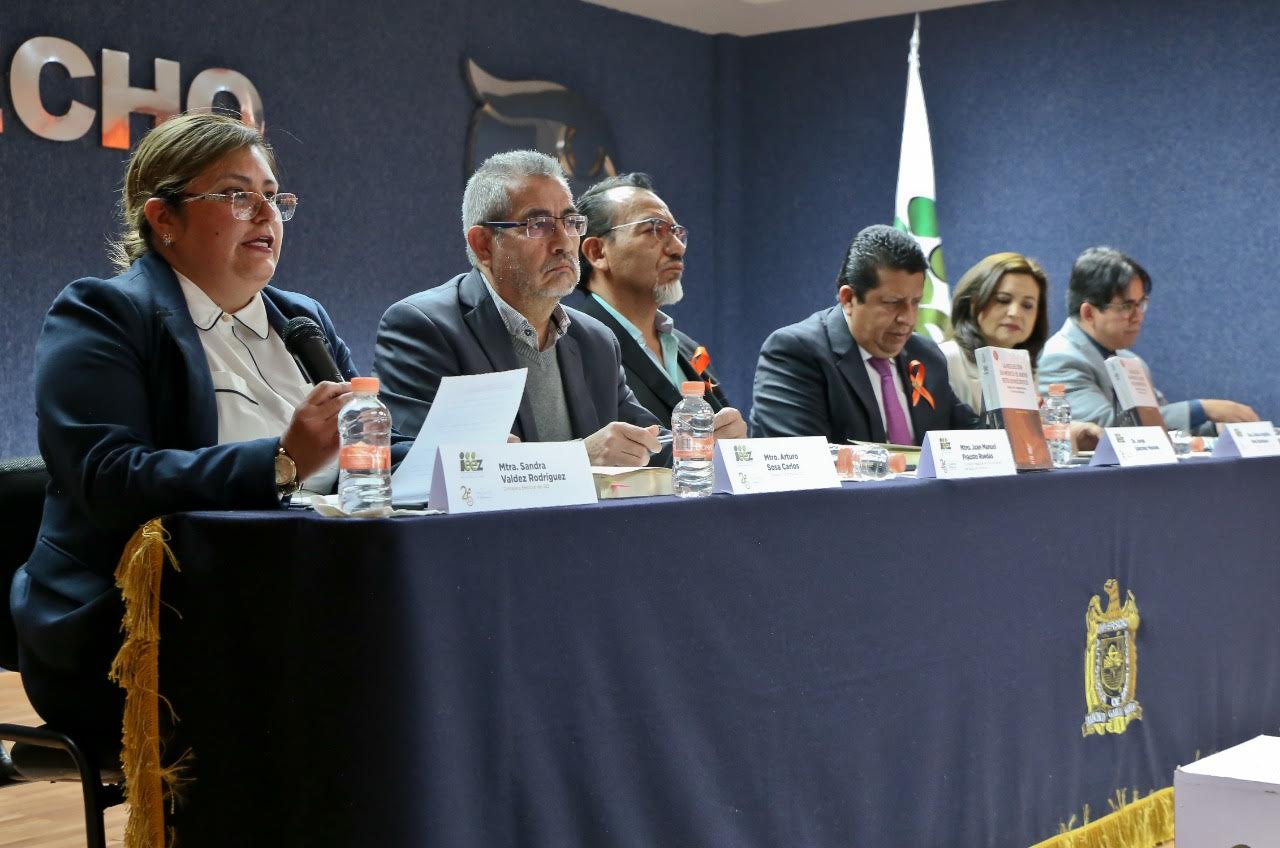 La obra fue comentada por Juan Manuel Frausto Ruedas, Consejero Presidente del organismo electoral, Arturo Sosa Carlos, Consejero Electoral y Liliana Angélica Vélez Rodríguez, docente-investigadora de la Unidad Académica de Derecho, en un evento moderado por la Consejera Sandra Valdez Rodríguez.