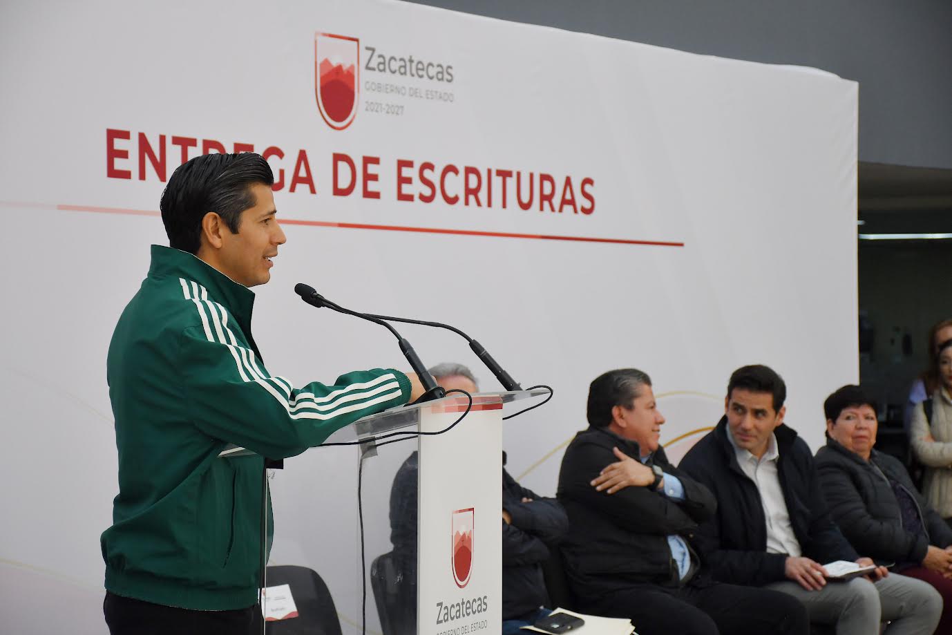 En su mensaje, el Gobernador de Zacatecas, David Monreal Ávila, puntualizó que cuando se tiene como resultado entregar escrituras, “y es algo en lo que siempre hemos creído y por lo que siempre hemos luchado, es un gusto coincidir”, aseguró el mandatario estatal y agregó que toda política pública del estado está orientada a lograr el bienestar y la pacificación, “espero que no nos lleve tantos años como el que tardaron en descomponer”.