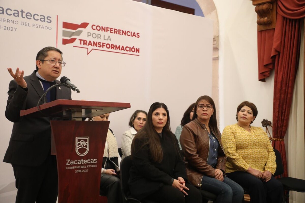 Lo anterior, durante la Conferencia por la Transformación, en la que Olivares Sánchez presentó al pueblo de Zacatecas el Paquete Económico 2023, acompañado por la Secretaria General de Gobierno, Gabriela Pinedo Morales y diputadas de la LXIV Legislatura local.