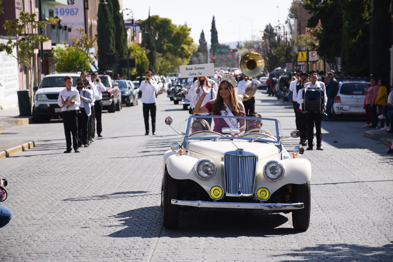 Zacatecas, Zac.-Con la Banda Sinfónica del Estado del Zacatecas encabezando el convite y en medio de un ambiente totalmente familiar, tuvo lugar el tradicional desfile de danzas, bandas y autos clásicos, que recorrió las principales calles de la Ciudad de Guadalupe, esto en el marco de la Feria de la Virgen de Guadalupe en su edición 2022.