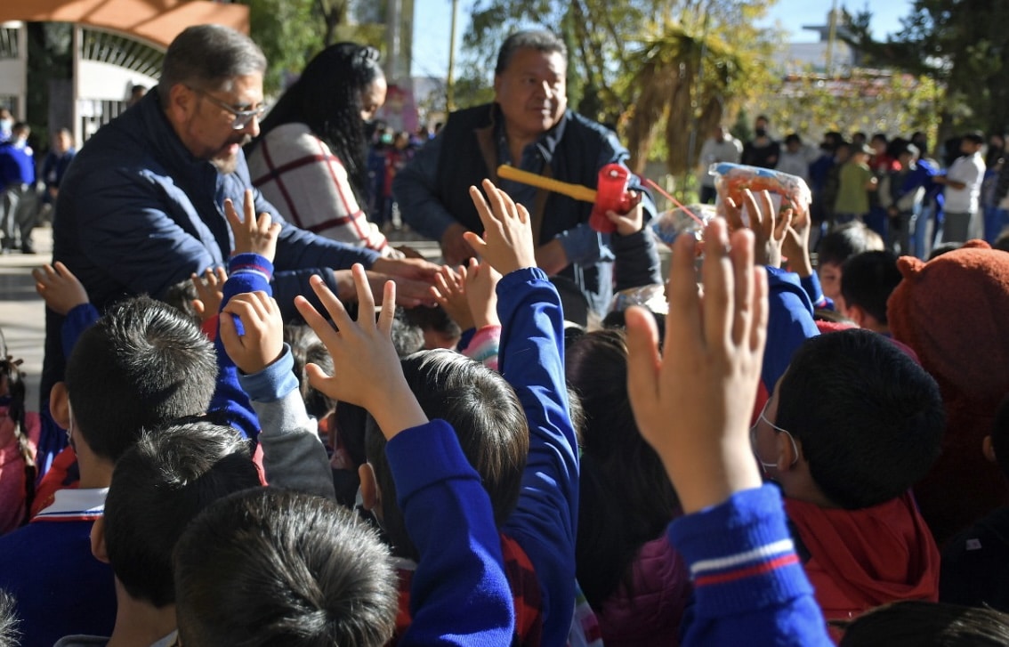 Zacatecas, Zac.-Cumpliendo con la promesa de llevar alegría y esperanza a los alumnos de las diferentes instituciones educativas del Municipio a través de Posadas Navideñas, el personal del Ayuntamiento de Guadalupe, que encabeza Julio César Chávez Padilla, ha recorrido decenas de instituciones educativas con la entrega de bolos y juguetes para miles de estudiantes de nivel básico.