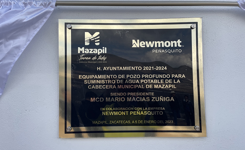 Mario Macías Zúñiga, Presidente Municipal de Mazapil, reconoció a Newmont Peñasquito por la suma de esfuerzos que permanente realiza en beneficio de la población, y que en esta ocasión permitió hacer realidad esta obra, que soluciona el acceso al vital líquido para los habitantes de Mazapil.