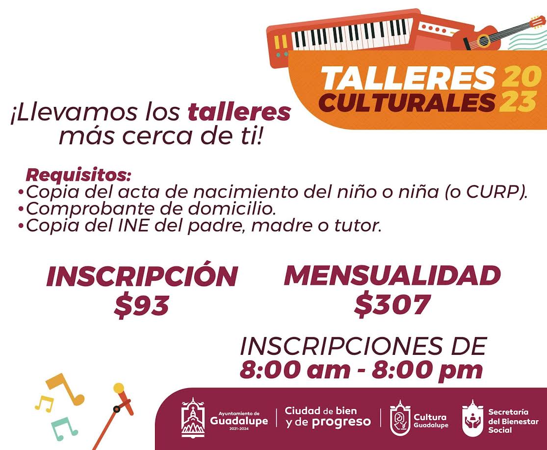 Bajo el lema ‘Llevamos los talleres más cerca de ti’, este próximo lunes 13 de febrero iniciará la impartición de los Talleres Culturales 2023, para lo cual las inscripciones aún se encuentran abiertas, esto bajo la coordinación del Instituto Municipal de Cultura, a cargo de Angélica Jasso.
