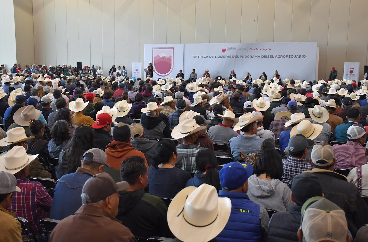 Al hacer entrega de las tarjetas del Programa Diesel Agropecuario, que significan un recurso económico de 7 mil 500 pesos para cada beneficiario, el Gobernador del Estado, señaló que durante este 2023 se tiene contemplada la realización de 6 Expo Ferias Regionales, de las cuales una de ellas, se estará llevando a cabo en el Municipio de Guadalupe.