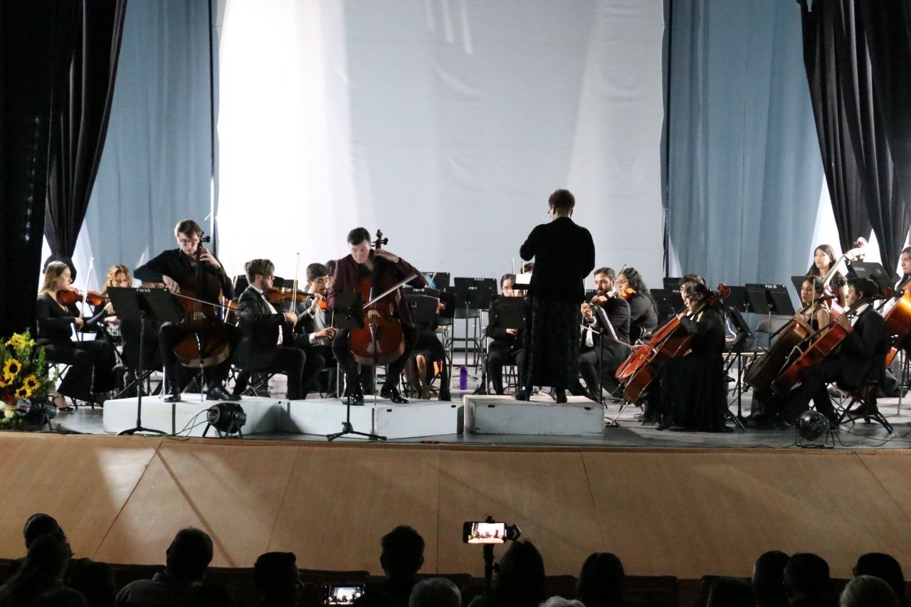 Fresnillo, Zac.- Para clausurar la semana de trabajo en Fresnillo, los violonchelistas Daniel Curtaz, italiano, y Johannes Raab, alemán, ofrecieron un concierto en el teatro “José González Echeverría” en compañía de la Banda Sinfónica Juvenil de la Universidad Autónoma de Zacatecas.