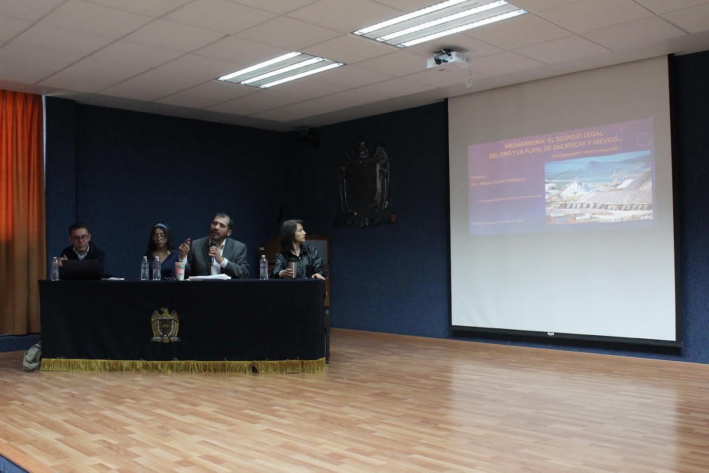 Zacatecas, Zac.- En la Unidad Académica de Derecho (UAD) de la Universidad Autónoma de Zacatecas (UAZ), se presentó la conferencia magistral “Megaminería: El Despojo Legal del Oro y la Plata de Zacatecas y México – Neoliberalismo y Neocolonialismo”, como parte del Seminario Internacional Permanente, sobre Estudios de la Complejidad Social.