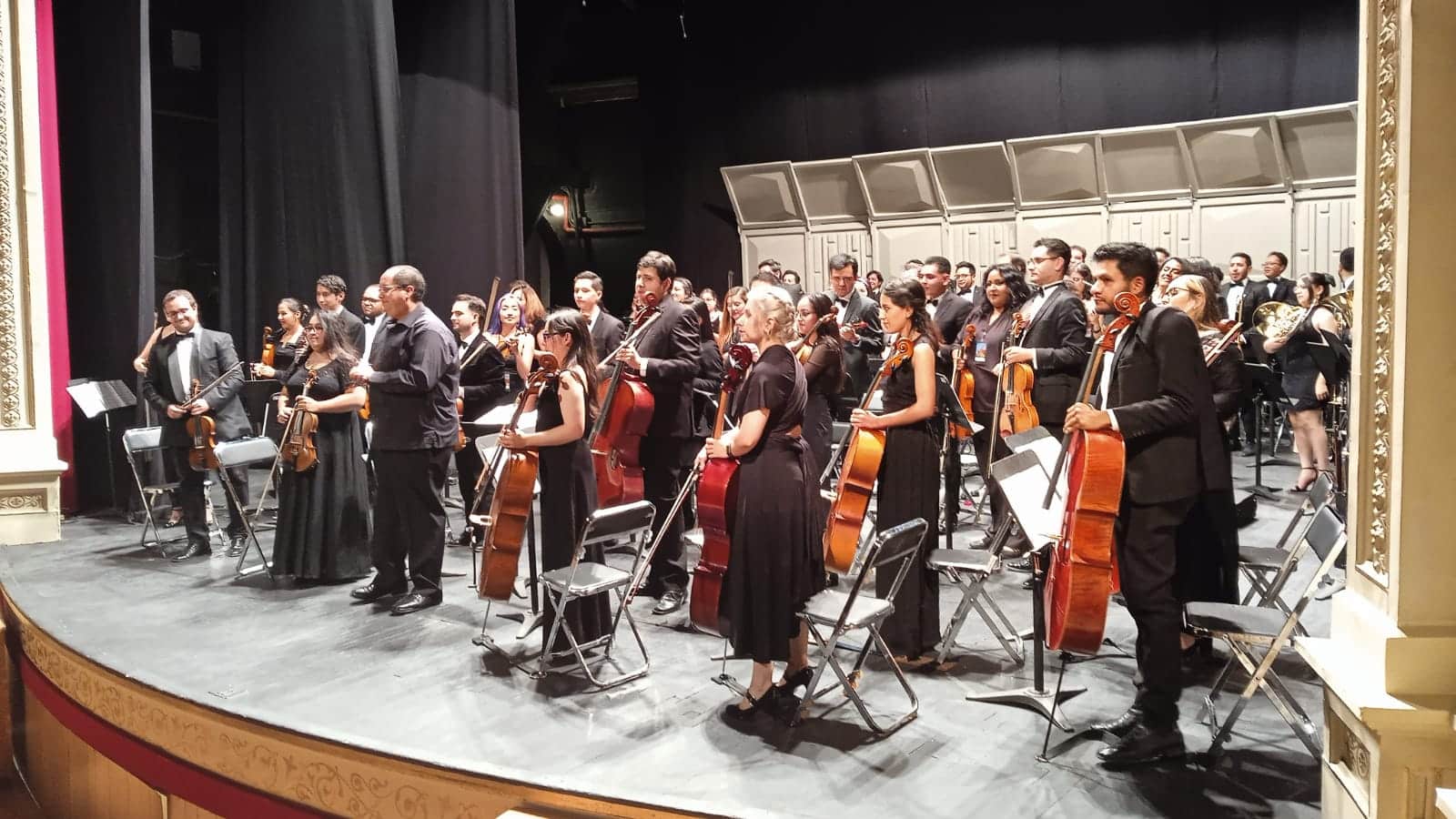 En el intermedio del concierto, en el que participaron Guillermo Varela como director invitado y Carla Benítez como solista en el violín, se ofreció un homenaje a su directora titular, la maestra Cristina Pestana Alpizar. Al subir al escenario del Teatro Fernando Calddrón, la docente de la Unidad Académica de Música de la UAZ se mostró emocionada por el reencuentro con antiguos integrantes de la agrupación, algunos residentes de otros estados de la República que vinieron a Zacatecas a participar en el concierto.