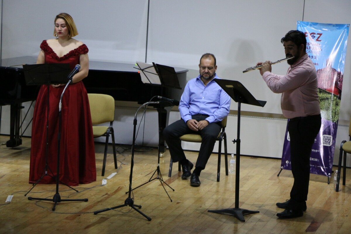 Zacatecas, Zac.- Con piezas del compositor zacatecano Francisco Javier Muro Guevara, la agrupación Agua y Desierto Encontrados ofreció un magistral concierto en el auditorio Juan García Oteyza, del Museo de Arte Abstracto “Manuel Felguérez”, en el penúltimo día de actividades del foro de música de cámara del Festival Cultural Zacatecas (FCZ) 2023.