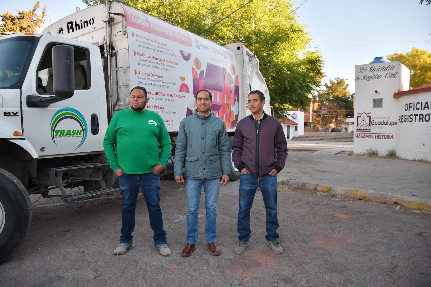 Saldívar Alcalde destacó la importancia de que, desde el Ayuntamiento de Guadalupe, a través de la Secretaría de Servicios Públicos, la recolección de basura se lleve a cabo de manera eficaz y adecuada, es por ello, dijo, debido a la gran concentración poblacional en esta zona, el servicio se ofrece de lunes a sábado a partir de las 6 de la mañana.