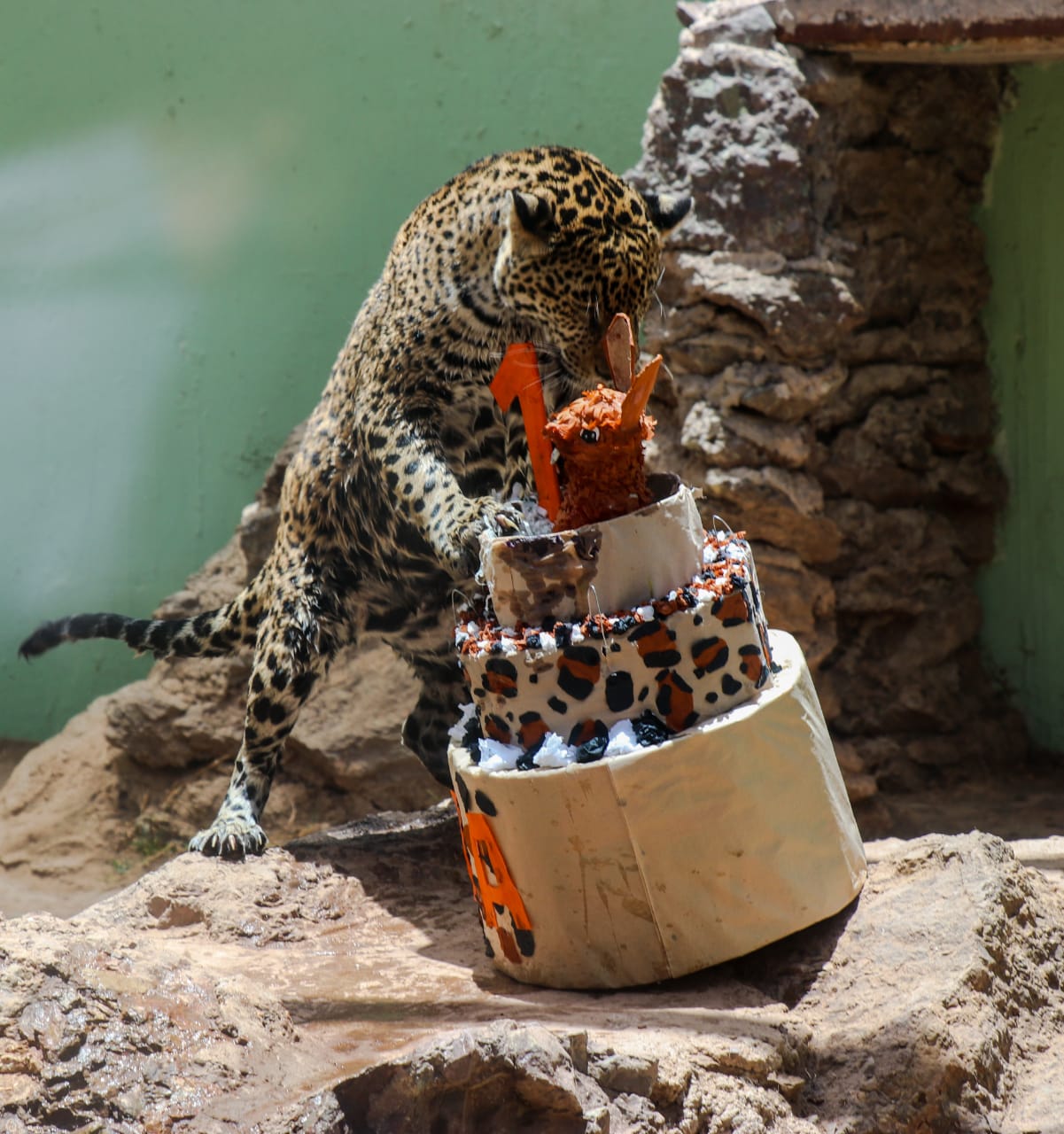 Zacatecas, Zac.- Para conmemorar el aniversario del nacimiento de Ava, primer jaguar nacida en cautiverio en Zacatecas, autoridades del Parque y Zoológico “La Encantada” organizaron un ameno festejo, en donde familias completas acudieron para disfrutar de amenidades en este lugar.