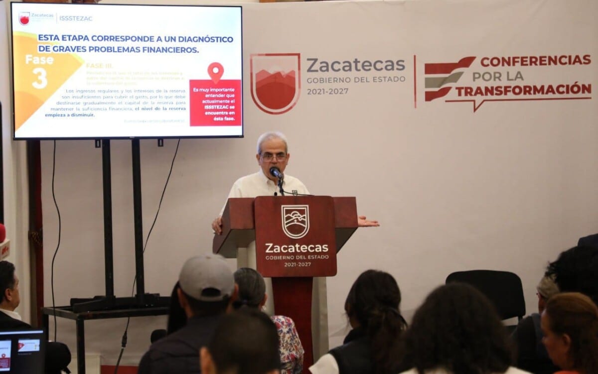 Zacatecas, Zac.- El Instituto de Seguridad y Servicios Sociales para los Trabajadores del Estado de Zacatecas (Issstezac) tiene dos alternativas: su liquidación o una reforma profunda a la ley, reafirmó el Director José Ignacio Sánchez González, quien admitió que vender todas las propiedades daría viabilidad hasta 2027, pero la actual administración estatal, encabezada por el Gobernador David Monreal Ávila, ha decidido no patear el bote, sino dar una solución de fondo.