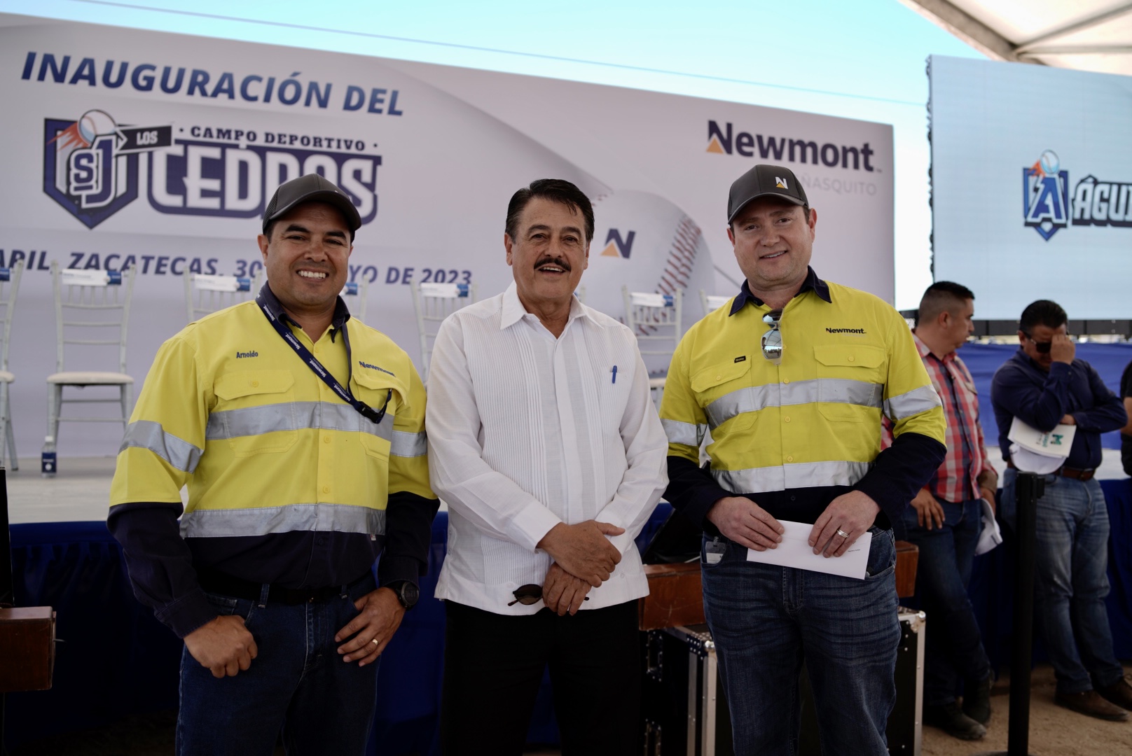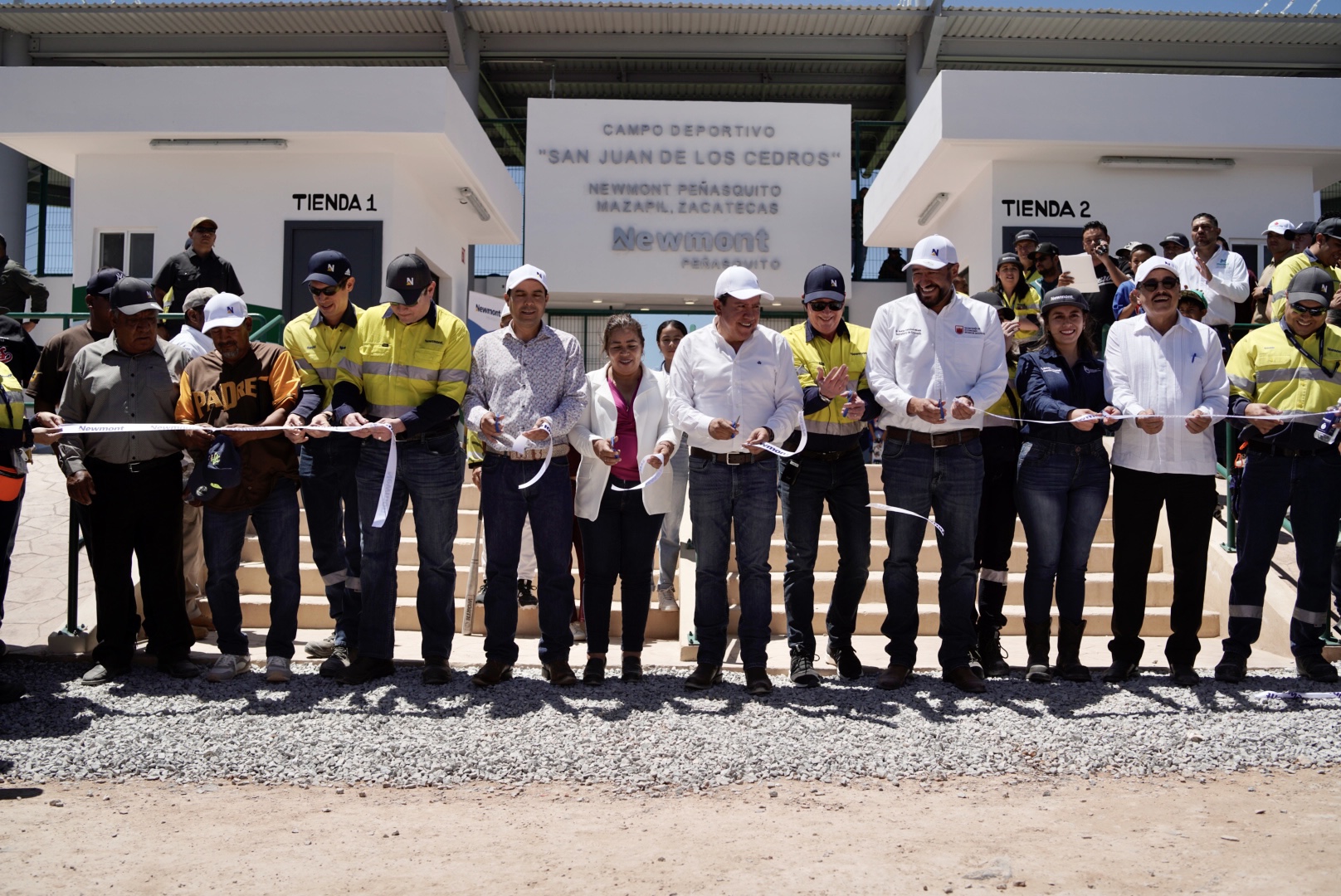 Mazapil, Zac.-Newmont Peñasquito hizo entrega del nuevo “Campo Deportivo San Juan de los Cedros”, en el evento participaron el Gobernador de Zacatecas, David Monreal; el Presidente del Municipio de Mazapil, Mario Macias Zúñiga; y Mónico Torres, Presidente del Comisariado Ejidal de Cedros, así como el Secretario de Economía del estado, Rodrigo Castañeda y el Diputado Alfredo Femat.
