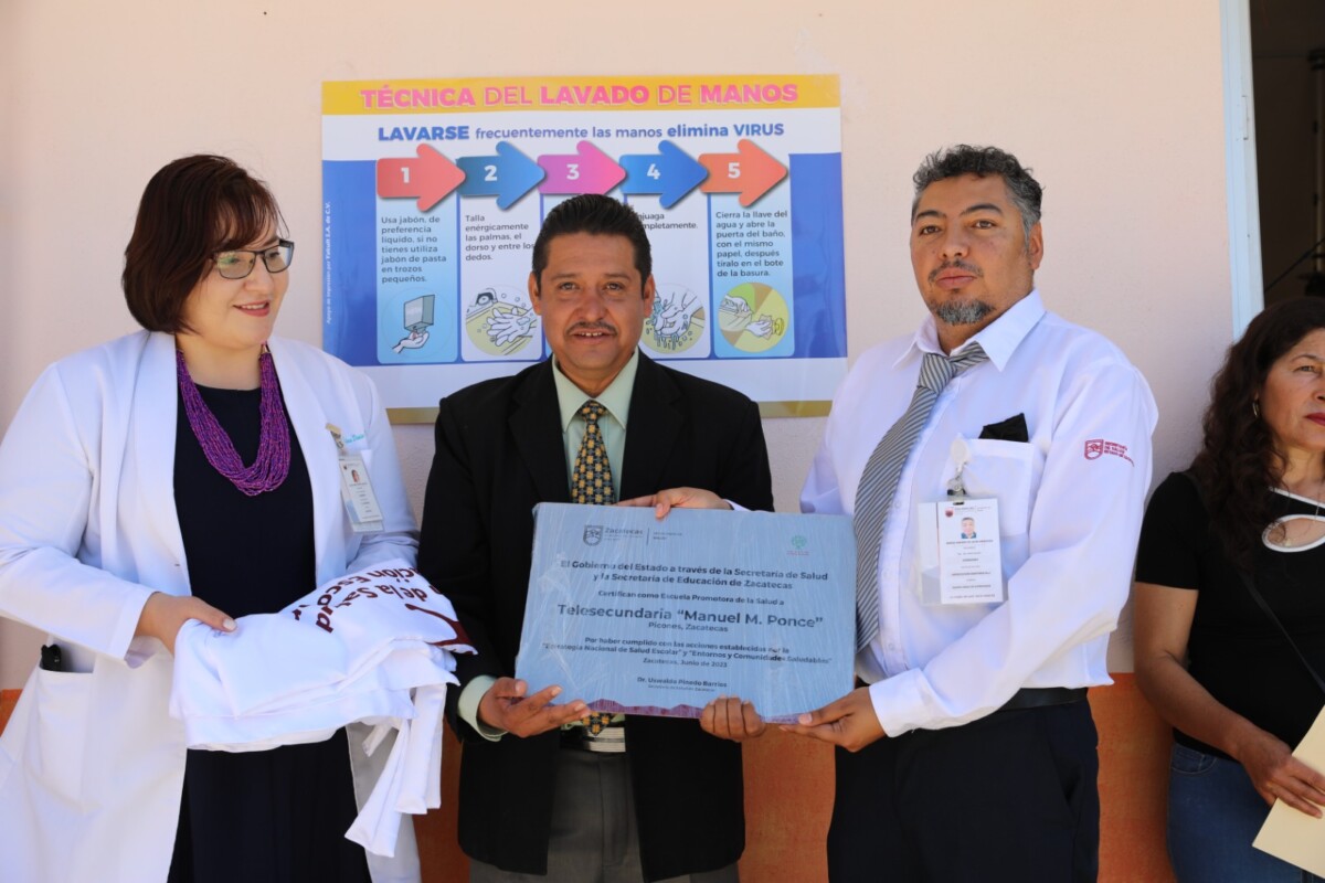 Recientemente, la Telesecundaria Manuel M. Ponce, ubicada en la localidad de Picones, Zacatecas, recibió la certificación como Escuela Promotora de Salud, gracias a su ardua labor en el cuidado y prevención de enfermedades en su comunidad.