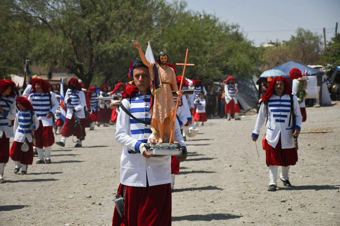 Esta entrañable tradición, que involucra a generación tras generación de fieles devotos, reunió de nueva cuenta a los más de 3 mil integrantes de la Corporación de San Juan Bautista, al ritmo de las bandas de guerra, escenificando los enfrentamientos entre cristianos, otomanos, turcos y moros.