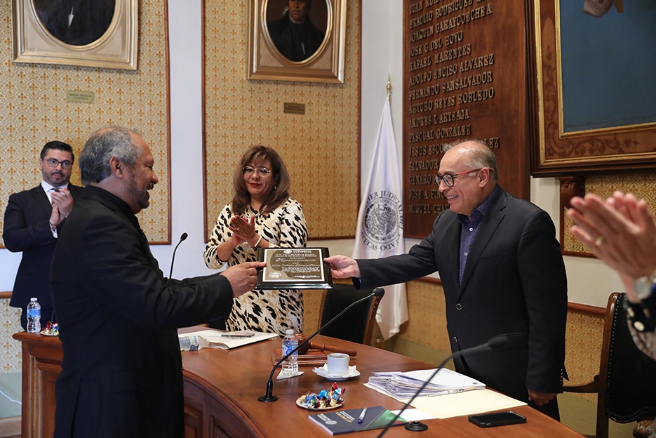En sesión de Pleno, el Magistrado Presidente Arturo Nahle García, agradeció a nombre de la institución el compromiso y espíritu de servicio que siempre mostró el Licenciado Martín Wenseslado Domínguez en cada uno de los cargos que desempeñó, refiriéndose a él como un funcionario ejemplar, sencillo y dispuesto a colaborar con convicción desde el año 1991 cuando ingresó al Poder Judicial.