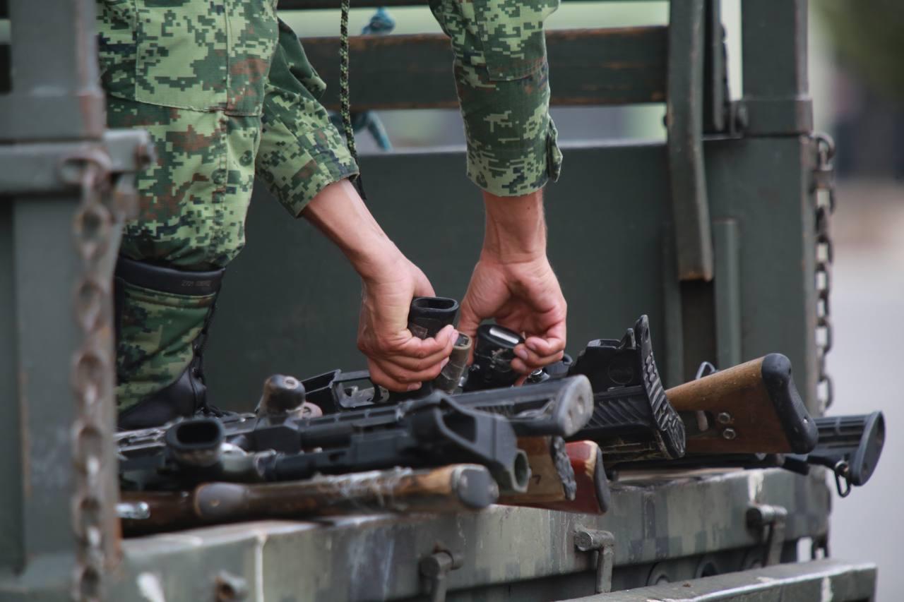Guadalupe, Zac.- Como muestra del compromiso para lograr la tranquilidad y la seguridad en Zacatecas, el Gobernador David Monreal Ávila y el General Alejandro Vargas González, comandante de la Decimoprimera Zona Militar, presidieron la destrucción de armamento decomisado en acciones coordinadas entre personal militar, Guardia Nacional, Secretaría de Seguridad Pública y corporaciones municipales.