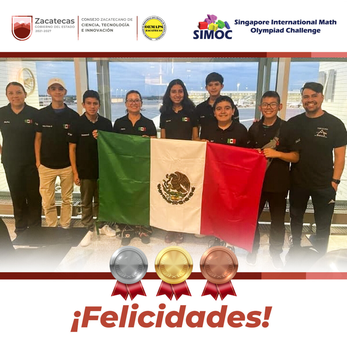 Zacatecas, Zac.– Una vez más, Zacatecas demostró su compromiso, dedicación y talento en la competencia Internacional de Matemáticas, realizada en Singapur, ya que, gracias a su buena preparación, disciplina y esfuerzo, siete estudiantes zacatecanos obtuvieron 12 galardones: nueve medallas y tres menciones honoríficas.