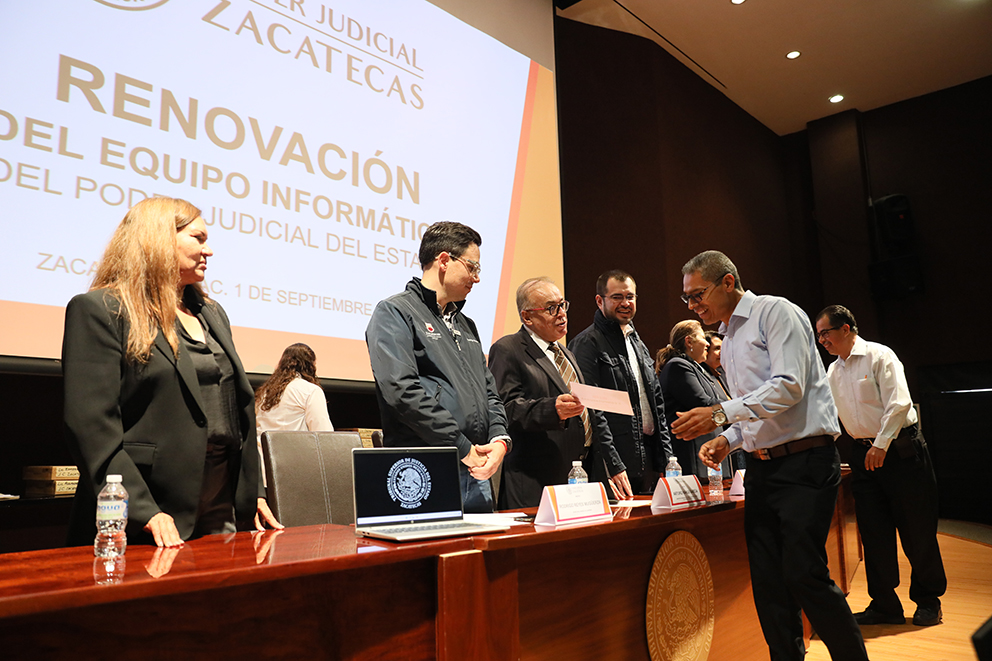 Zacatecas, Zac. – Gracias a la sensibilidad y solidaridad del Gobierno del Estado y la LXIV Legislatura, el Poder Judicial del Estado pudo renovar la mayor parte de sus equipos de cómputo, pues luego de que el Pleno del Tribunal Superior expusiera sus urgentes necesidades para la impartición de justicia se logró un recurso por 15 millones de pesos en un artículo transitorio del Decreto del Presupuesto de Egresos para el Ejercicio Fiscal 2023.