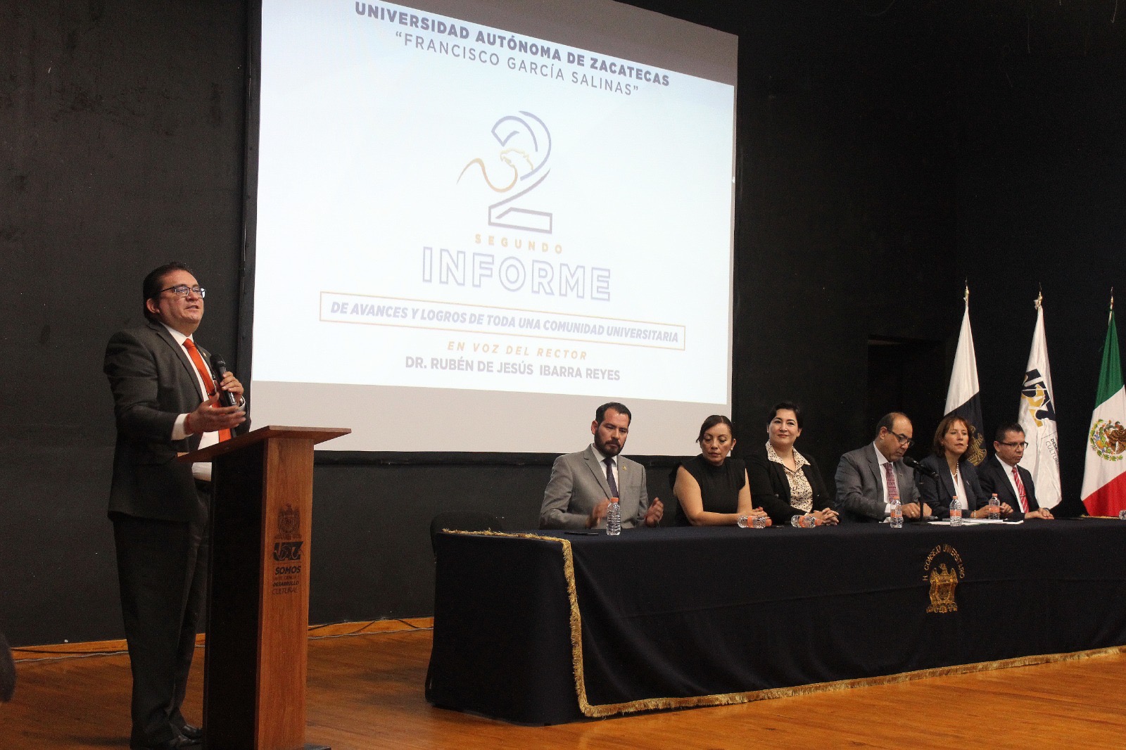 Zacatecas, Zac.-Este miércoles, en sesión especial del Honorable Consejo Universitario, el rector Rubén Ibarra Reyes entregó su segundo informe anual de labores –por escrito-, dando así cabal cumplimiento a lo prescrito en la Ley Orgánica, el Estatuto General y el Reglamento Interno de nuestra Universidad Autónoma de Zacatecas.